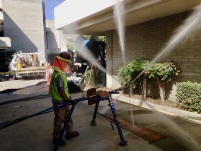 The City of Downey’s Well #11 was drilled in 1994. Total depth was 980’, 20” ID, with Ful-Flo Louvered perforations from 400-440, 480-640, 680-800, 840-960 (440’ of total perfs, distributed over 560’ …